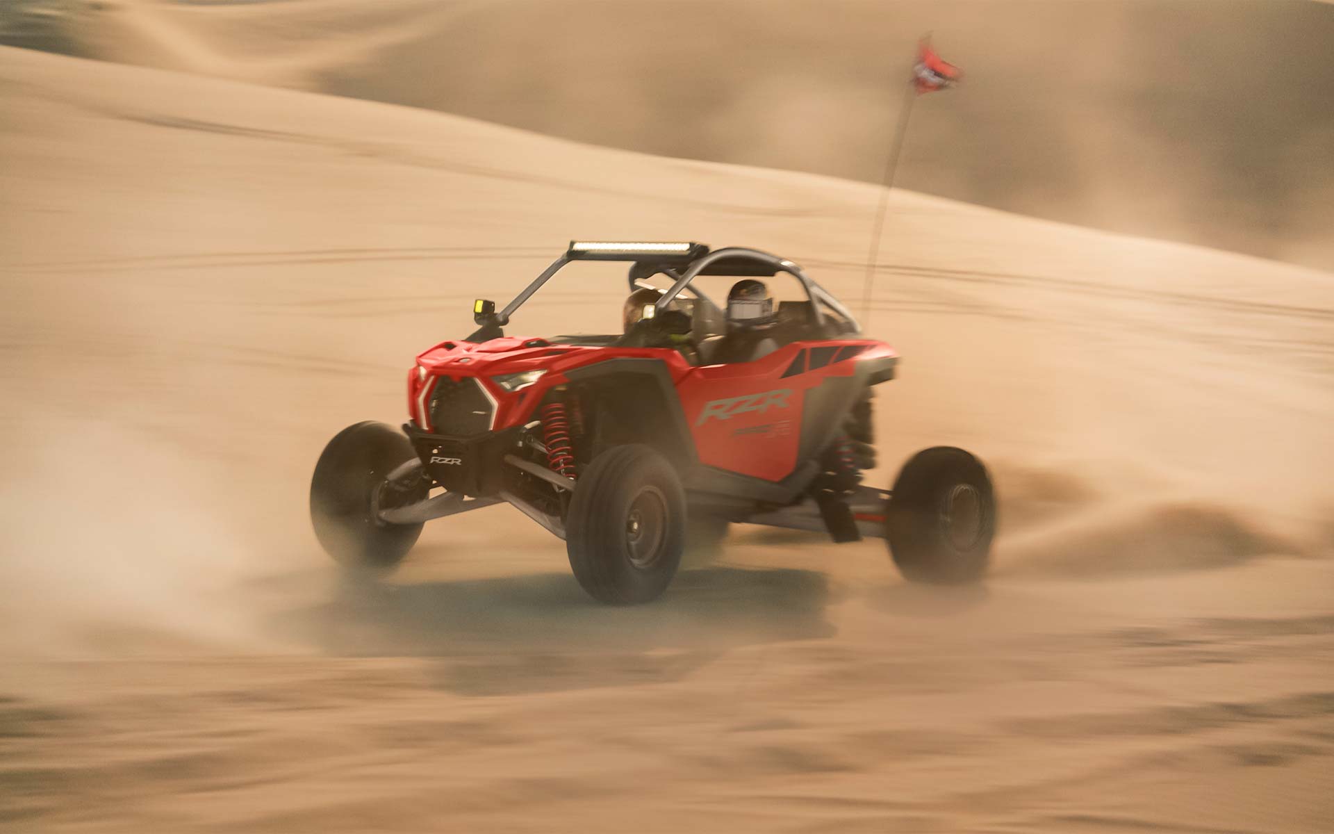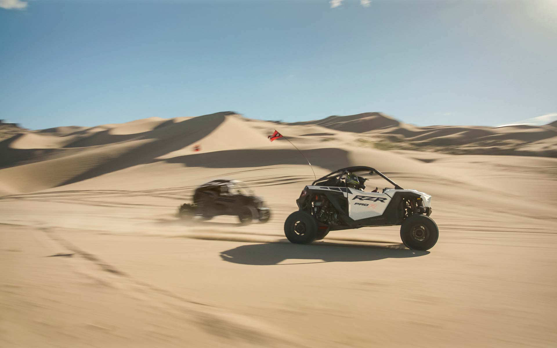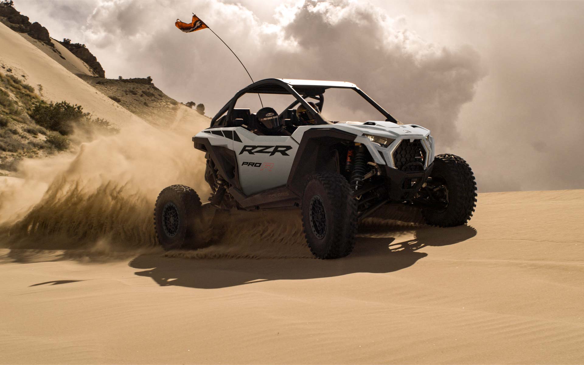 Out-thrill them all with an off-road beast designed to dominate. RZR Pro R delivers heart-pounding performance to defy deserts, conquer dunes and break records off road. Never place second again. With RZR Pro R, you always win.
