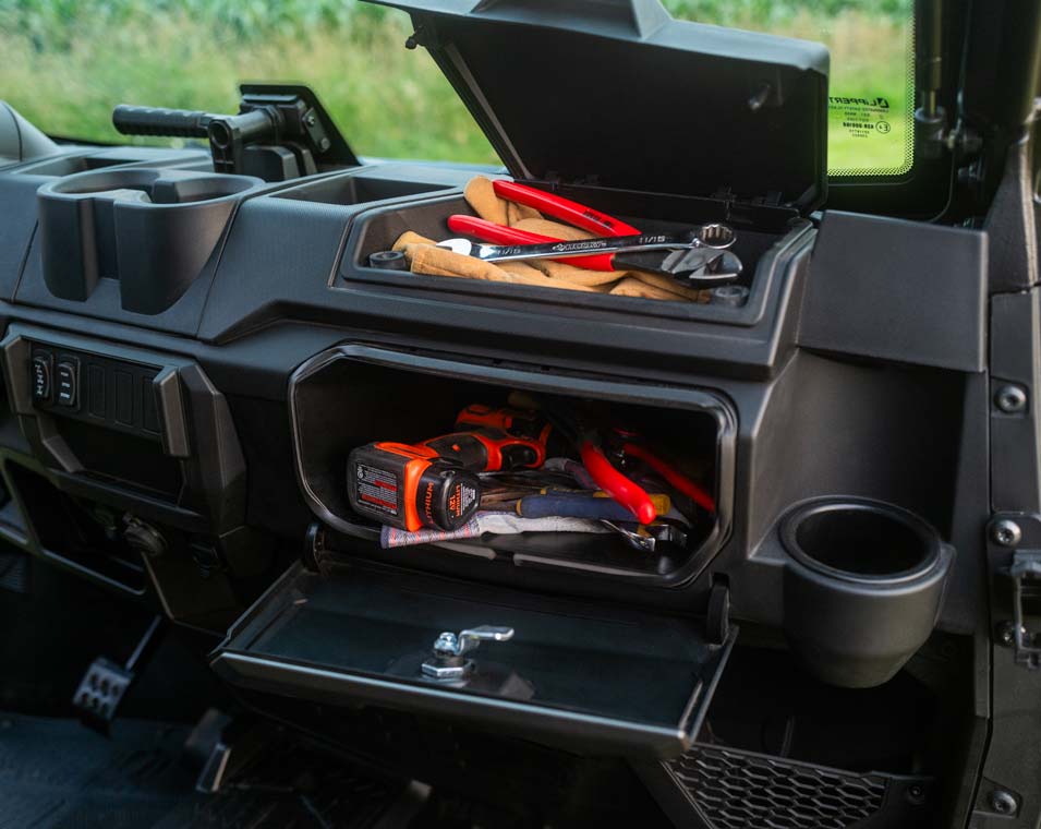 Factory-installed cab system with doors with crank windows, tip-out glass windshield with wiper and washer fluid, rear glass panel, Factory-installed heat and defrost, 4,500 LB Winch with synthetic rope, Auto Stop and wireless remote